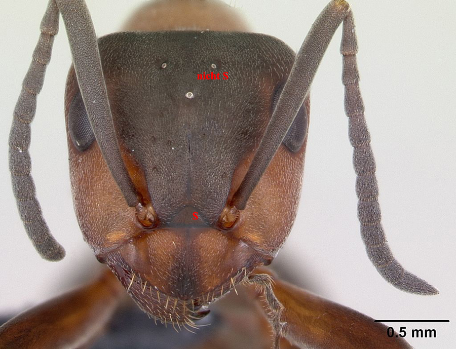 Im Antwiki kann man weitere Frontalaufnahmen auch der anderen Untergattungen von Formica zum Vergleich heranziehen.