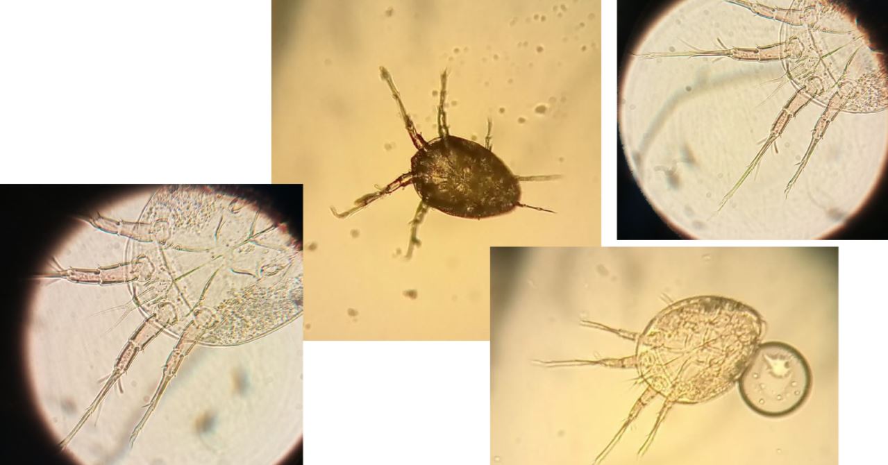 Das nächste mal sollte man ordentliche Aufnahmen machen, wo man die Mundwerkzeuge stark vergrößert sieht, dann kann man genau sehen, ob es parasitäre, oder "Futtermilben" sind.