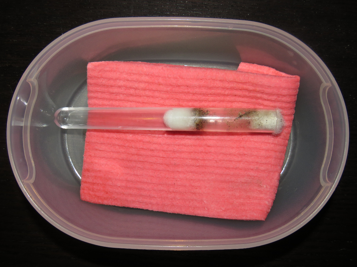Noch während der Winterruhe hatte ich festgestellt, dass der Wasservorrat im Reagenzglas einer Lasius cf. niger Gründungskolonie (vom letzten Sommer) zu Ende neigte. In dieser Situation gäbe es diverse Möglichkeiten, z.B über einen Schlauch ein neues Reagenzglas anzuhängen oder den Tank im Ragenzglas mit einer Spritze und einer Nadel aufzufüllen, Zwangsumsiedlung etc. Ich habe mich allerdings für den vielleicht einfachsten und für die Ameisen "stressfreisten" Weg entschieden:
