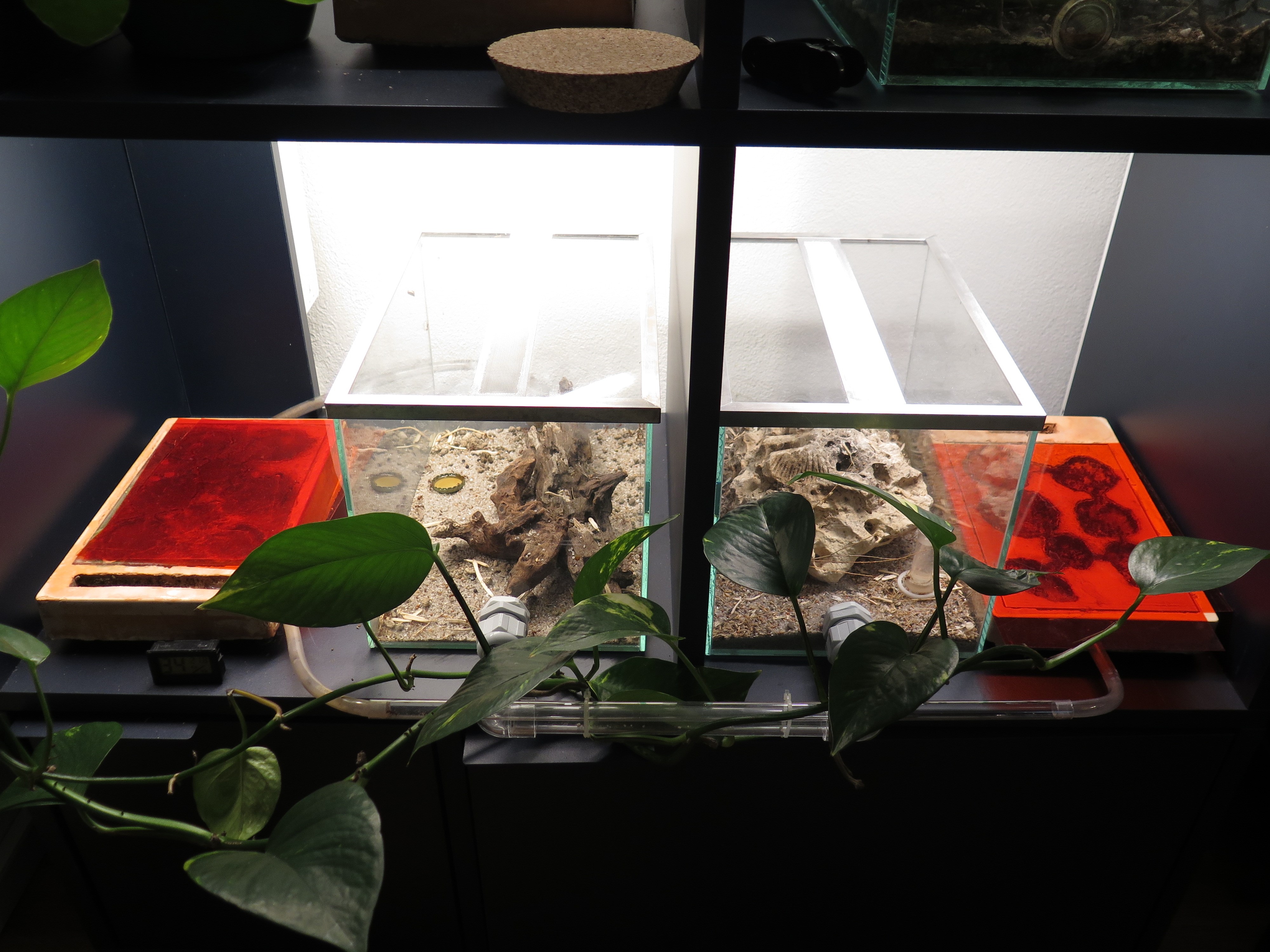 Becken: Die Kolonie bewohnt zwei 30cm × 20cm × 20cm grosse Becken, welche als Wüstenlandschaft mit Sandboden, Steinen und Wurzeln und ganz ohne Pflanzen gestaltet sind.