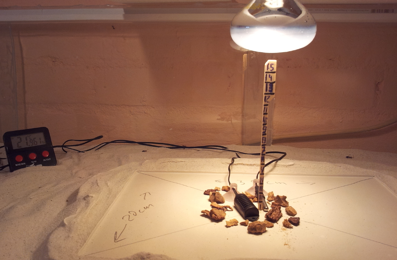 Monomorium pharaonis sah das etwa so aus, hier auf Gipsboden:
