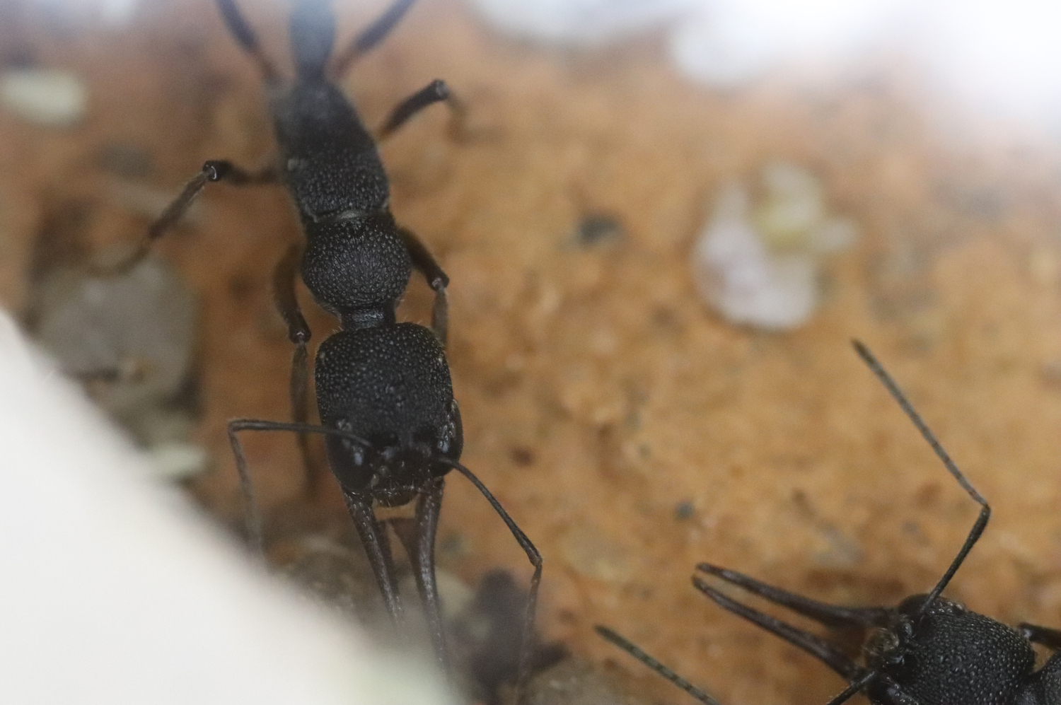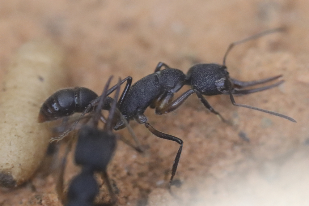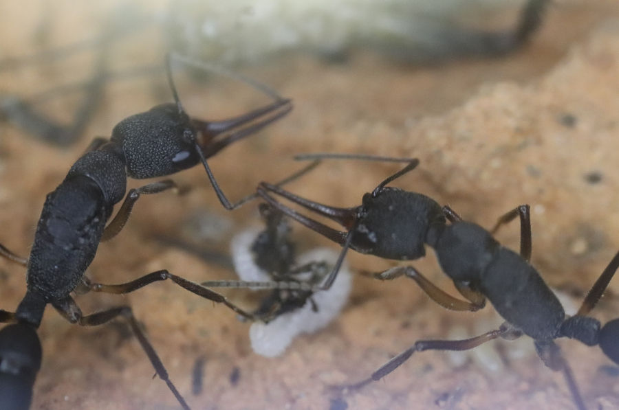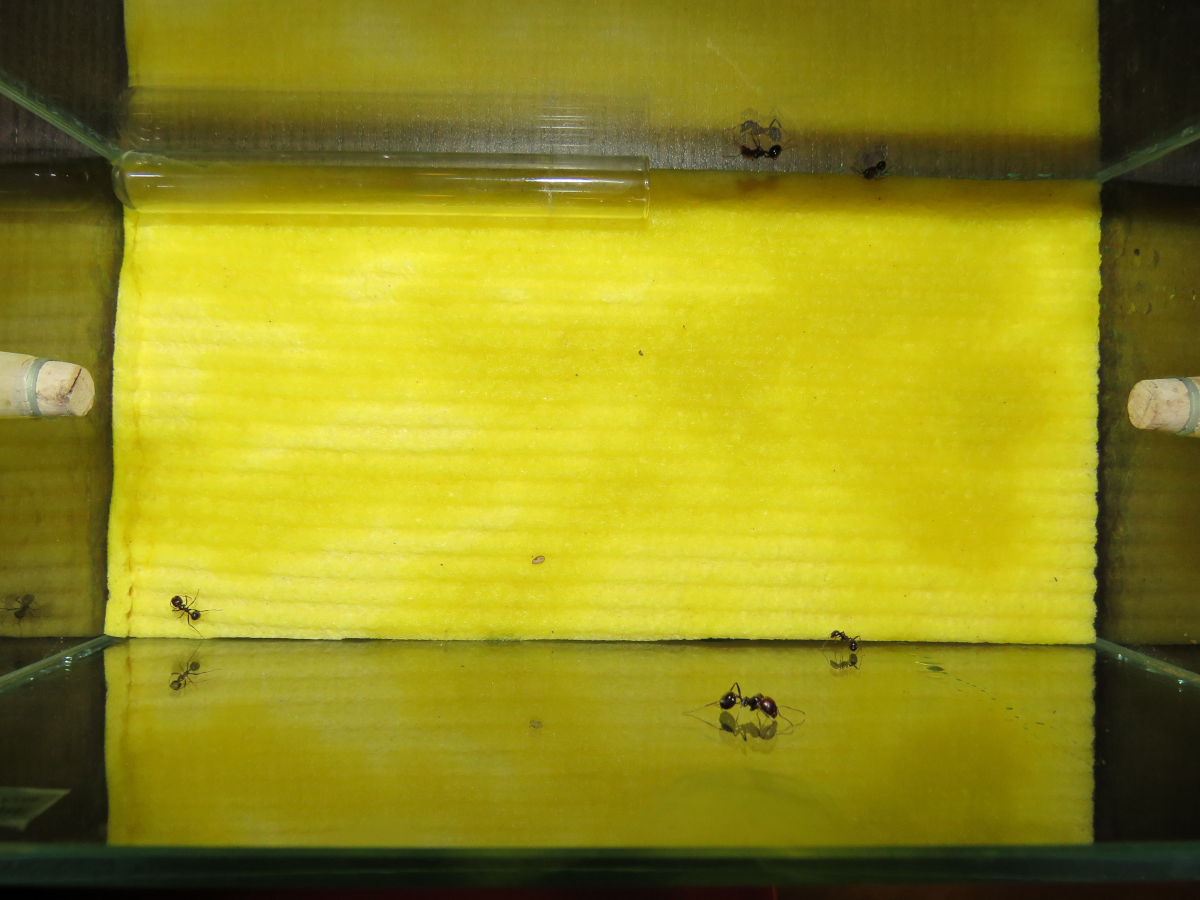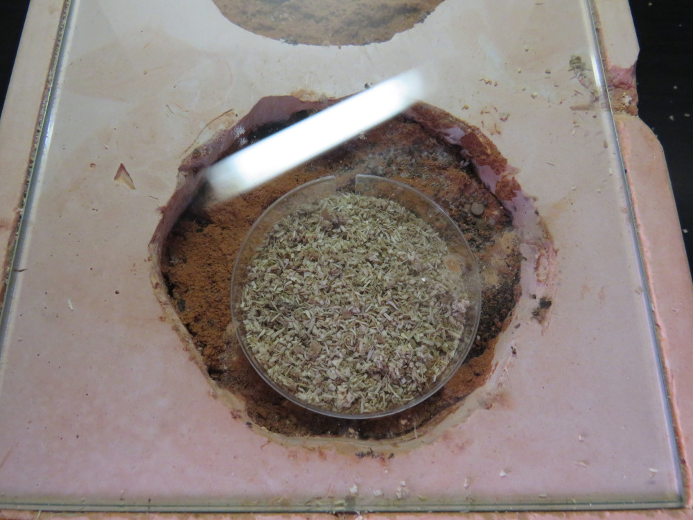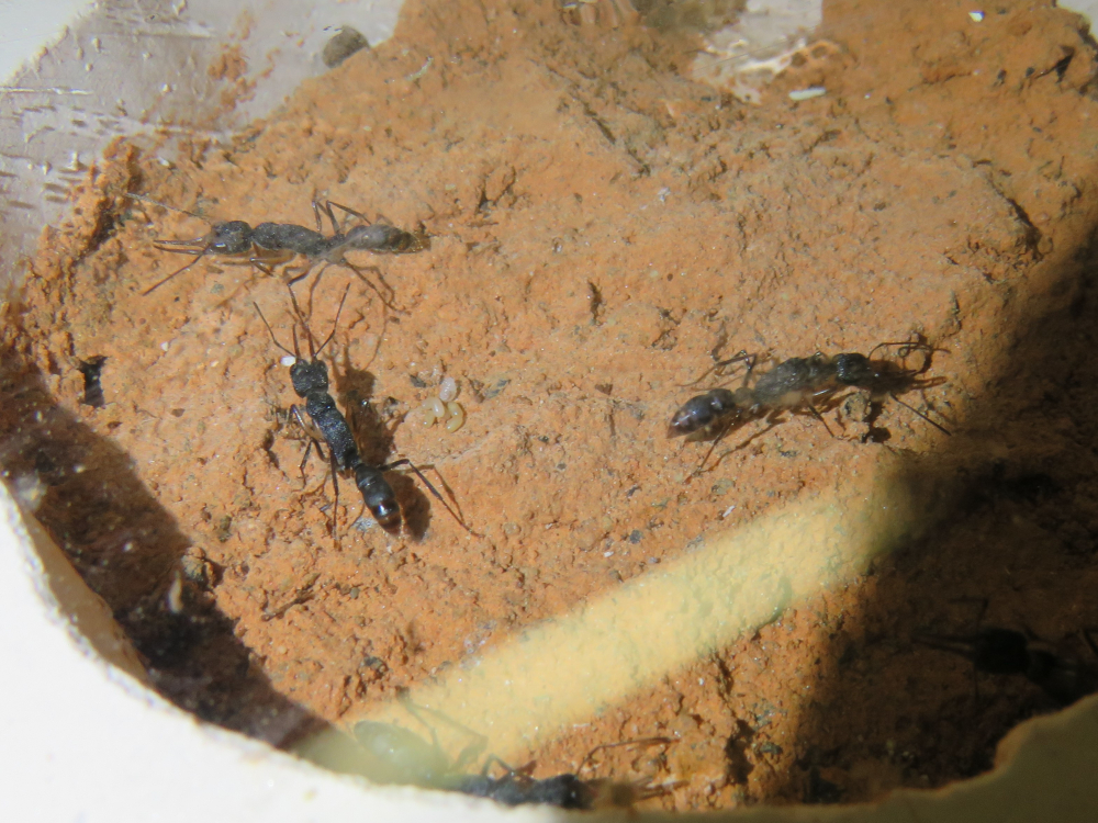 1. Auf den Ameisen sitzen noch immer Milben, besonders bei den Augen und auf den Mandibeln. Weiter scheint es die Insekten aber nicht zu stören. Zumindest soweit sich das beobachten lässt, verhalten sie sich normal und es gab auch keine weiteren Toten.