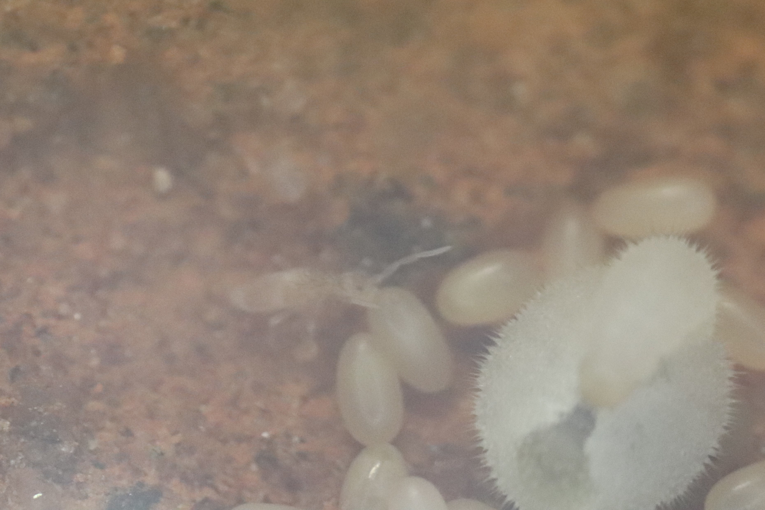 2. Ich hatte die Milben (Cheyletus eruditus) zuerst nur in der Arena ausgebracht. Im Formikarium sind inzwischen auch überall ausserhalb der Streu Raubmilben anzutreffen. Den Weg ins Nest haben sie aber vermutlich nicht selbstständig gefunden. Zumindest konnte ich dort keine Raubmilben entdecken.