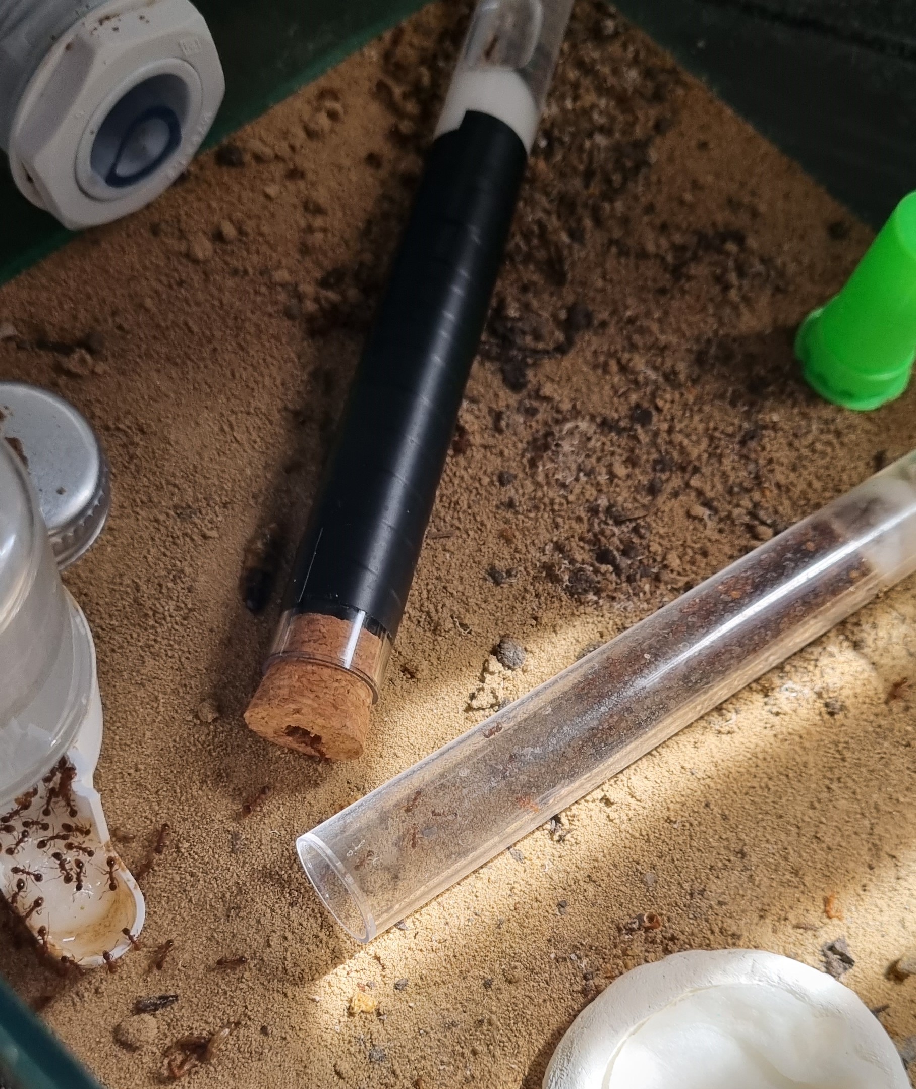 Kleines Update, Sie haben das abgedunkelte RG teilweise angenommen ca. 1/3 der Ameisen sitzen drinnen, der Rest bleibt im altem :(