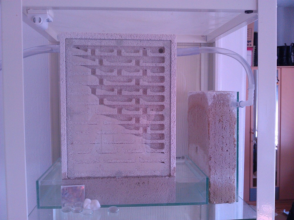 Der Sockel ist Teil des Ytongs, die Kammern fangen einfach erst in 5cm Höhe an, damit in die unteren kein Wasser reinläuft. Ich häng mal ein paar Bilder unterschiedlicher Nester an, die ich alle so befeuchtet habe.
