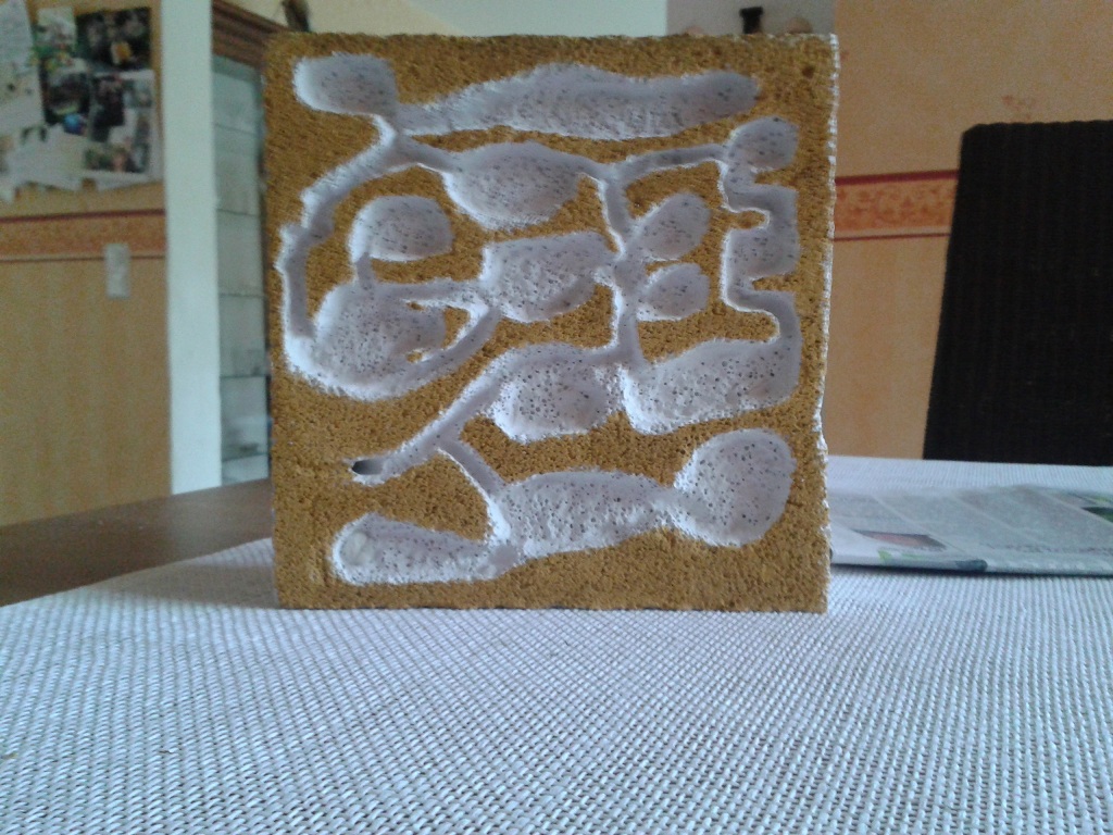 Für die Bewässerung kannst du etwa einfach eine Aussparung bzw. Vertiefung (oder besser mehrere kleine) in die obere Seite des Ytong meisseln. Mehrere Gräben ermöglichen dir zum Beispiel eine Seite feuchter zu halten als die andere. Die Aussparungen müssen nicht sehr gross sein. Das Wasser wird frisch hinein gegeben und dann vom Stein aufgesogen, beim stehenden Ytong läuft es im Stein langsam herunter.