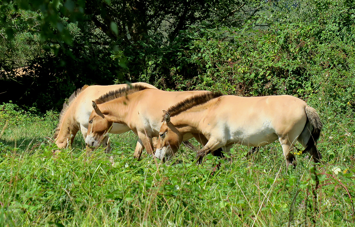 wo man Przewalski-Pferde und sog. Heckrinder angesiedelt hat. Sie „pflegen“ die weiten, offenen Flächen und sorgen u. a. dafür, dass sich dort eine recht reichhaltige Fauna eingestellt bzw. erhalten hat.