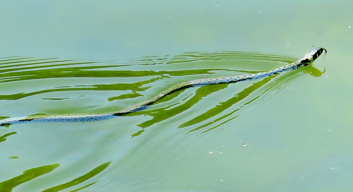 Aus dem Uferbewuchs aufgestört schlängelt sie sich davon ...