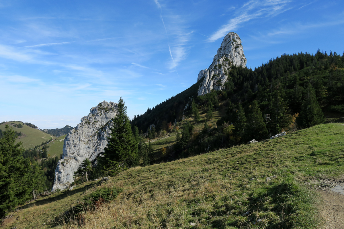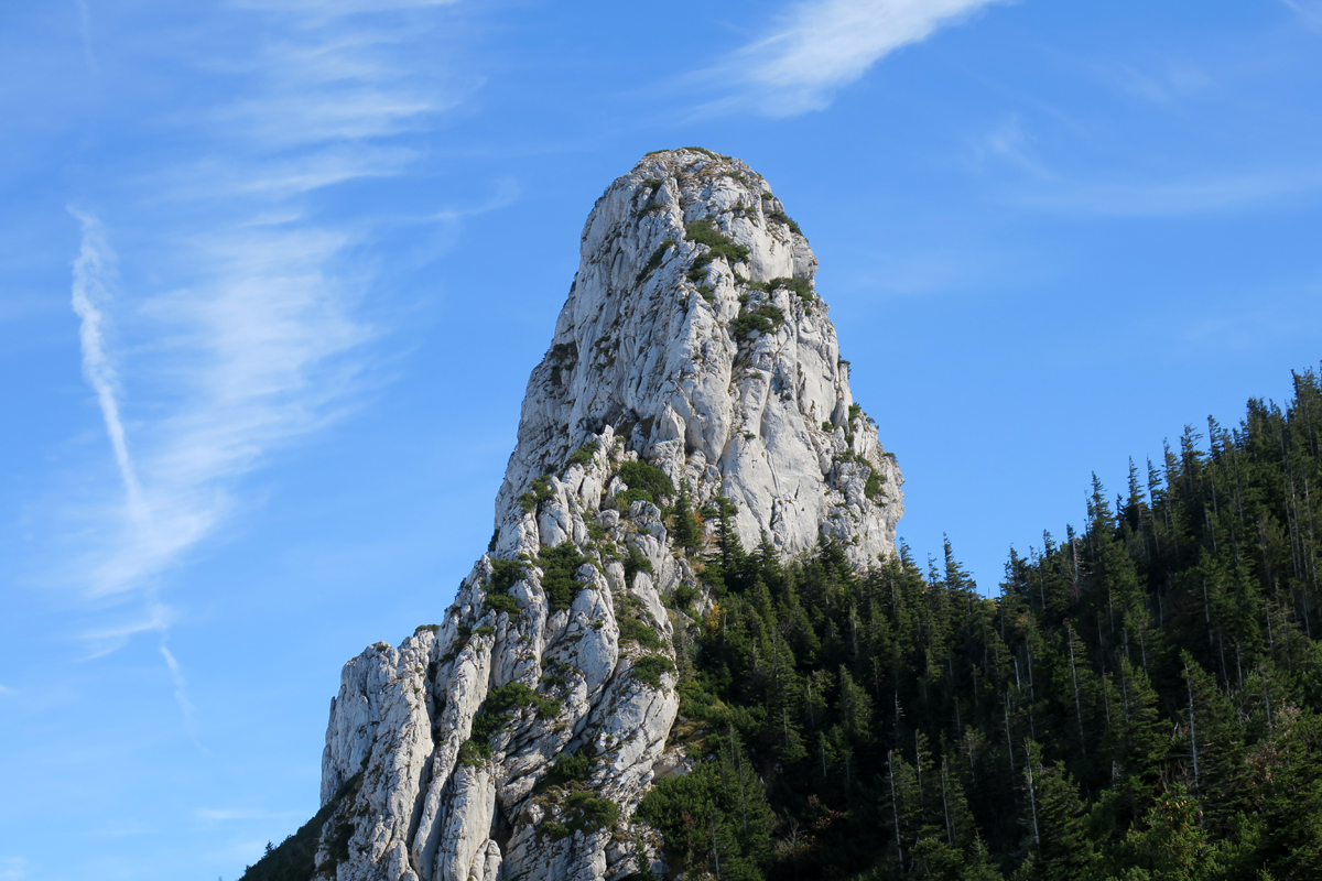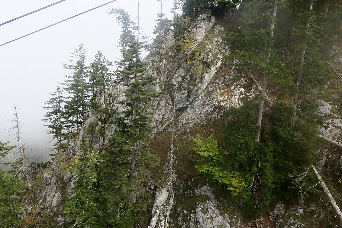 Es geht steil hoch zwischen Fichten an fast nackten Felswänden. Zu meiner Überraschung sah ich dort auf kleinen, mit Nadeln bedeckten Flächen tatsächlich