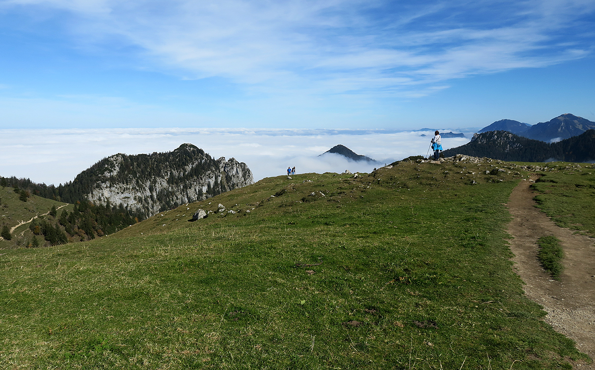Oben bin ich die Wanderwege in Richtung des Ostgipfels entlang gelaufen. Von hier hat man einen fantastischen Weitblick auf den Chiemsee und das Alpenvorland: