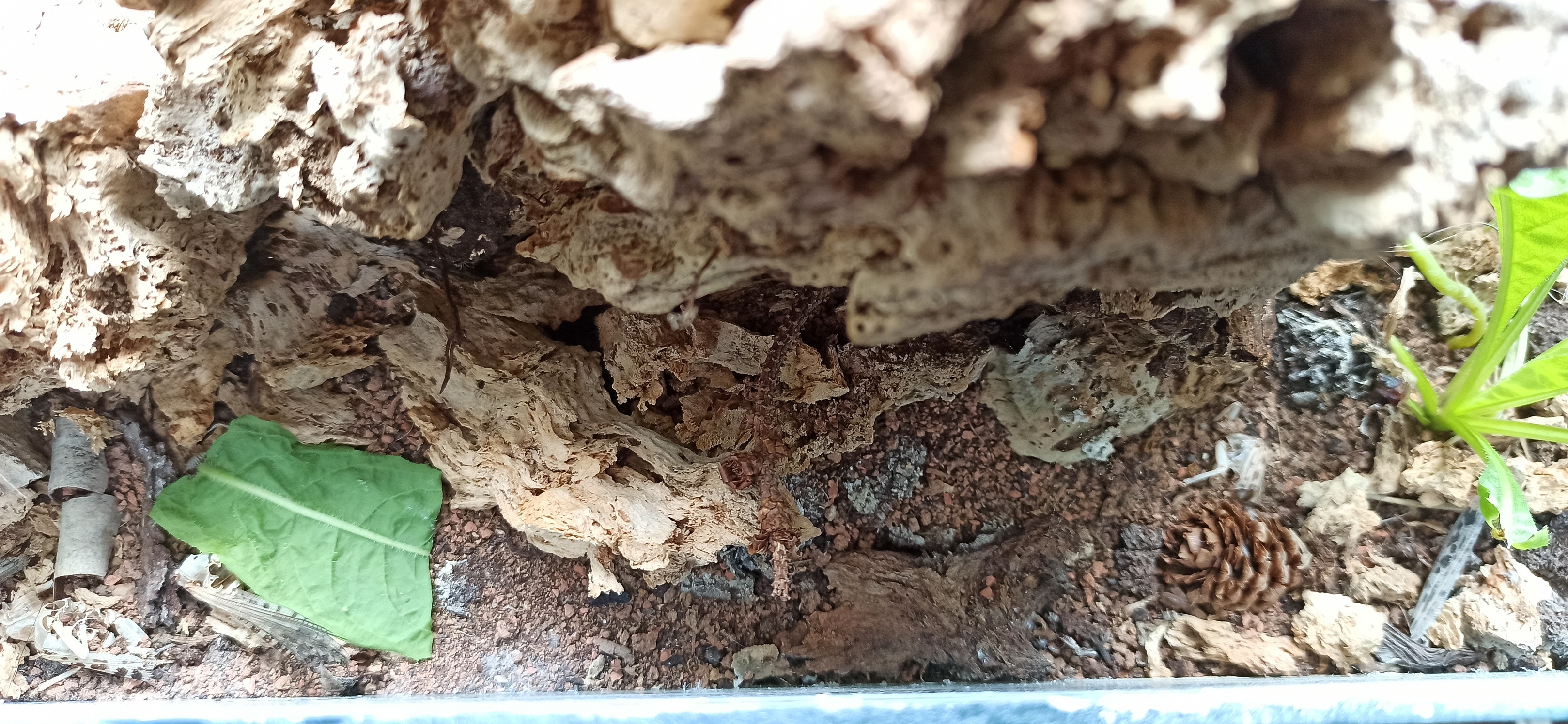 Generell bin ich sehr zufrieden. Auch wenn man auf den "ersten Blick" wenig erkennt, so ist bei genauem Hinsehen das Gegenteil der Fall: Die Ameisen verhalten sich ganz anders, als in steriler Haltung. Sie interagieren mit anderen Tieren, indem sie zum Beispiel Nahrung gegen freche Asseln sichern. Sie nutzen das Profil von Holz und Boden um sich "wegzugucken", sobald sie die Bewegungen des Halters bemerken, gehen dann aber alsbald beruhigt weiter. Sie haben viele kleine und verborgene Gänge durch Holz und Erde. Immer wieder gibt es unterschiedliche Baustellen und Bewegungen. Sie unterhalten diverse Standorte und verändern ihre Position. Nicht immer kann ich nachvollziehen, woran das liegt. Manchmal tragen sie Holz oder Erdbrocken herum. Sie sind stets aktiv und hungrig. Die Kolonie wächst eindeutig, genauere Zahlen kann ich natürlich nicht nennen.