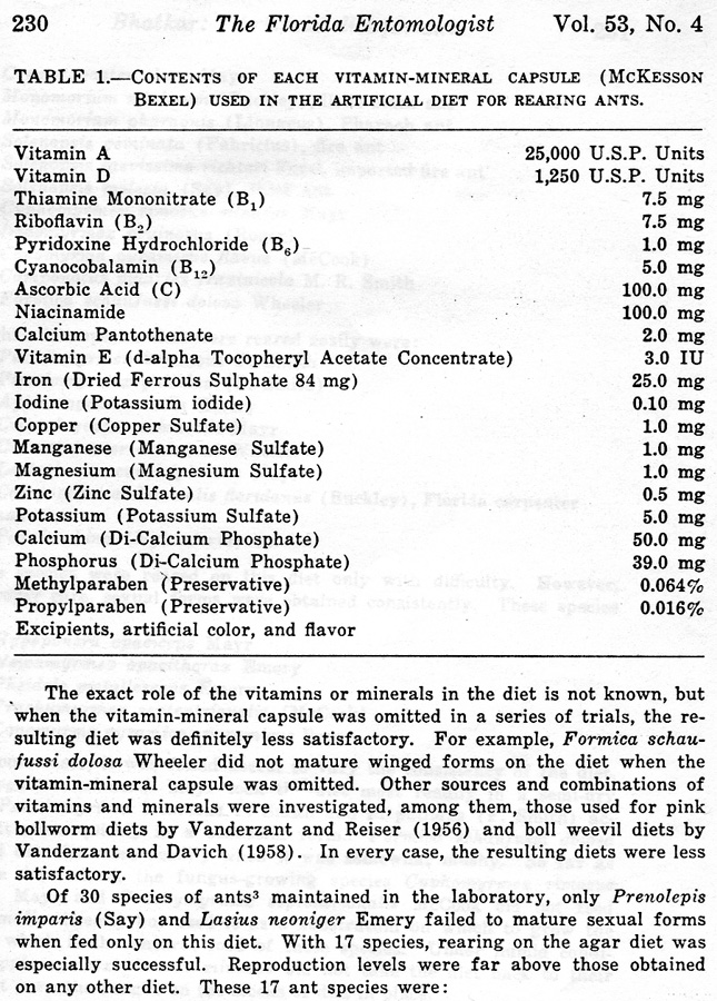So wird z.B. angesprochen, dass die bekannte und viel verwendete Bhatkat-diet völlig nutzlos sei. Immerhin dazu gibt es eine vergleichende Untersuchung nach wiss. Maßstäben: Buschinger, A., Pfeifer, E.(1988): Effects of nutrition on brood production and slavery in ants (Hymenoptera, Formicidae). Ins. Soc. 35, 61-69., hier referiert.