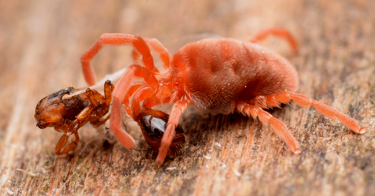 Samtmilbe mit Beute. Foto: Phil Hönle