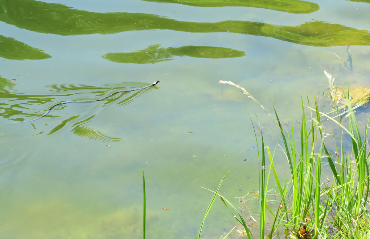 Aus dem Uferbewuchs aufgestört schlängelt sie sich davon ...