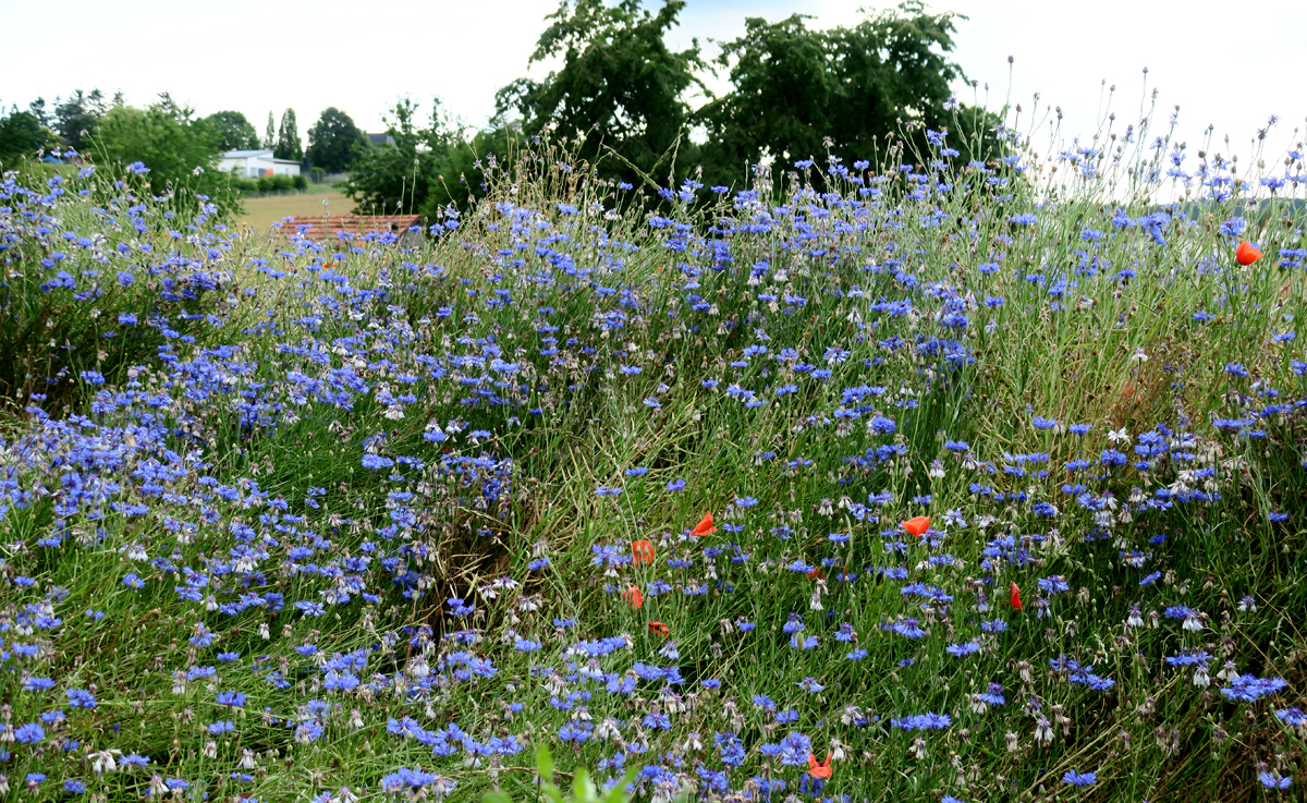 angesät. Auch ein paar Klatschmohn-Blüten sind darunter, und recht viele Hummeln haben sich daran bedient!