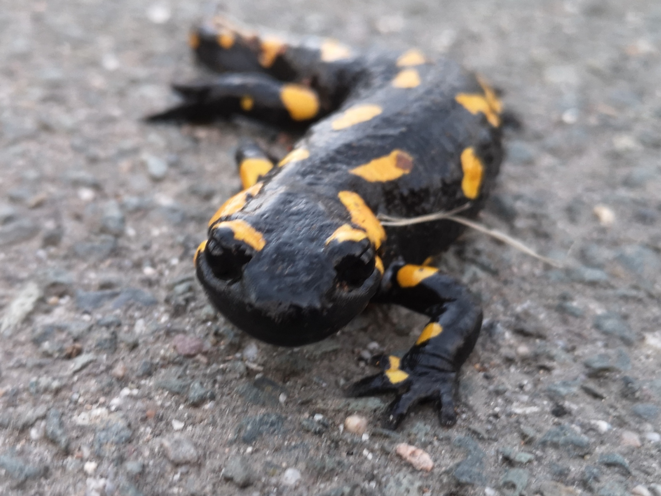 Habe gerade noch Bilder aus dem März diesen Jahres gefunden, der bisher einzige, lebende Feuersalamander in diesem Jahr (Tote waren es bereits 4, darunter wohl auch der auf den Bildern gezeigte... Am nächsten Tag lag an der selben Stelle nämlich einer dieser 4) .