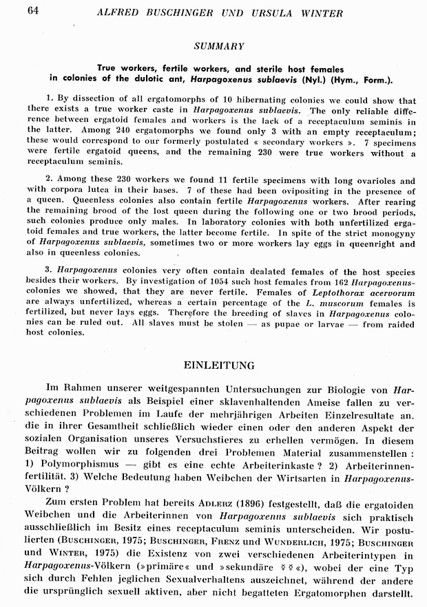 Die 44 Jahre alte Arbeit entstand im Rahmen unserer langjährigen Experimente mit dem einheimischen Sklavenhalter Harpagoxenus sublaevis. Teilweise sind unsere Erkenntnisse im AmeisenWiki dargestellt: