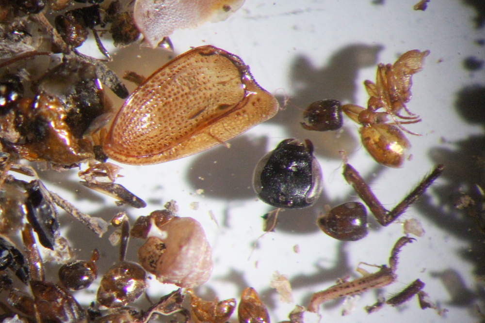 Der mit Häufigkeit auffälligste Anteil in dieser "Müllhalde" sind Gynen (und deren Einzelteile) der Diebsameise Solenopsis fugax, die Abdomen immer beschädigt und leer.