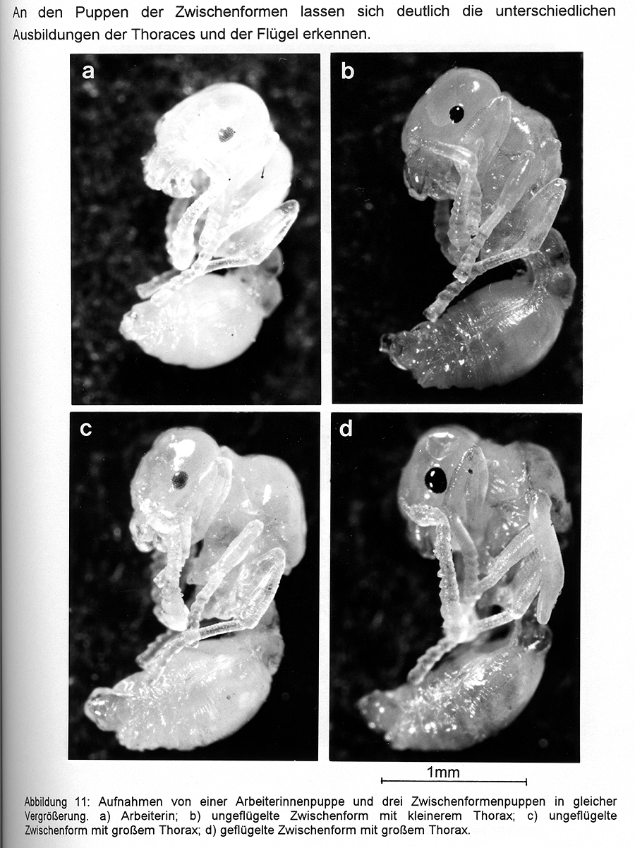 Bereits im Puppenstadium lassen sich normale Arbeiterinnen von Zwischenformen unterscheiden