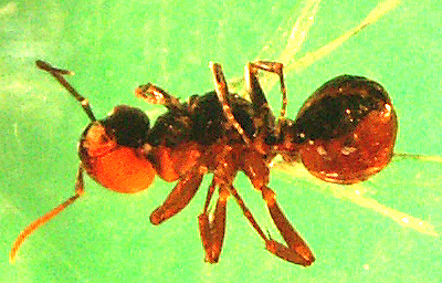 Was mir erst etwas spät einfiel: Im Gegensatz zu den meisten Ameisenarten sind die Männchen bei M. pavida nicht schwarz, sondern eher wie die Arbeiterinnen gefärbt! Anders als bei dem o.g. Gynander von Polyergus lassen sich damit die männlichen Anteile bei M. pavida nicht ganz so einfach identifizieren. Und wie's "drinnen" aussieht, weiß bis heute kein Mensch!
