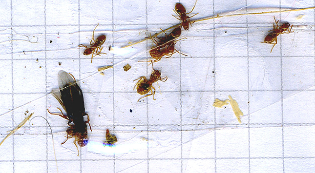 Es ist bei mir ein seit vielen Jahren fast alltägliches „Erlebnis“, so auch heute wieder: Im Briefkasten steckt ein Umschlag mit ein paar mittels Klebstreifen fixierten Ameisen, dazu eine oft lange, heute mal ausnehmend kurze Beschreibung: „Wieder einmal… Ameisen im Fachwerkhaus, … Sorge vor Schäden am Holz, …Bitte um Bestimmung und Rat für weiteres Vorgehen, …Nennung eines Kammerjägers." (Region immerhin aus der Adresse zu entnehmen und lesbare e-mail angegeben).