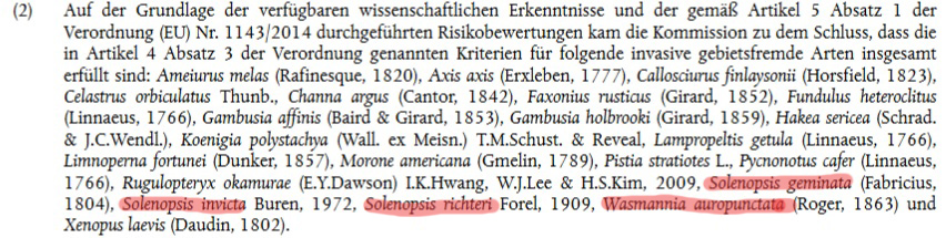 Vorbeugen ist besser als heilen! Deshalb habe ich betr. Import und Haltung exotischer Ameisen vor 20 Jahren gegenüber dem Umweltbundesamt und dem BfN meine Bedenken geltend gemacht und eine Beschränkung empfohlen.