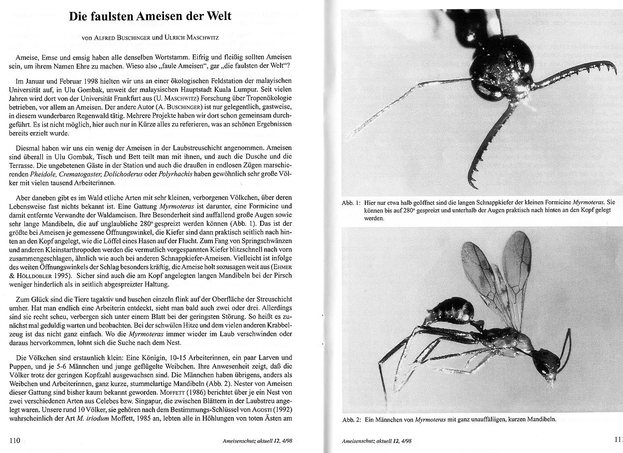 Buschinger, A., Maschwitz, U. (1998): Die faulsten Ameisen der Welt. - Ameisenschutz aktuell 12, 110-114.