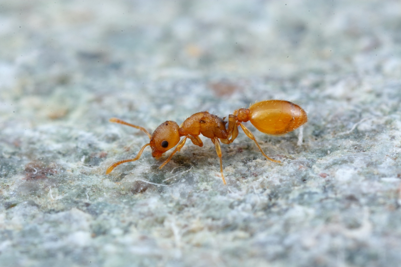 Vor kurzem habe ich mit dem Sohn einen aufgelassenen Steinbruch erforscht. Höhepunkt war wieder der Fund des seltenen Camponotus aethiops. Daneben wurde ein Individuum aus dem vorgelagerten Erdreich gesiebt, das einige Rätsel aufgibt. Ich hoffe, dass einer unserer Experten dazu Stellung nehmen kann.