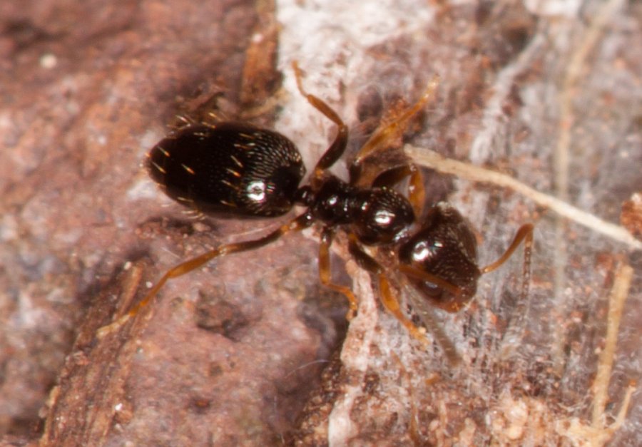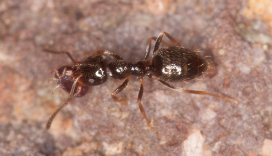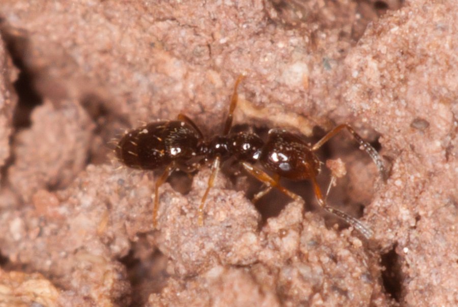 Habe da auch gleich mal wieder eine Bestimmungsanfrage, die mir an anderer Stelle nicht beantwortet werden konnte. Ende März fand ich mehrere, einzelne, winzig kleine Ameisen an einem felsigen Trockenhang. Sie wuselten leider sehr schnell durch die Gegend, so daß es mit dem Fotografieren schwierig war. Ich würde da jedenfalls an Plagiolepis denken wollen. Aufgrund der im Seifert erwähnten Verbreitung käme wohl nur Plagiolepis vindobonensis in Frage, aber eine Artbestimmung erwarte ich natürlich nicht. Wenn die Gattung bestätigt werden könnte, würde mir das völlig reichen.