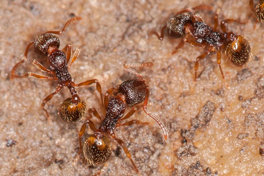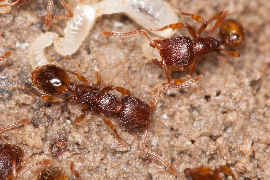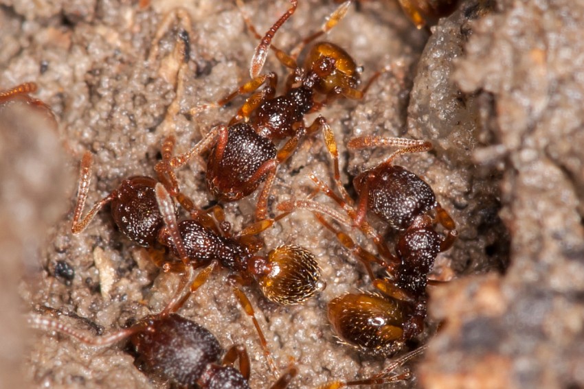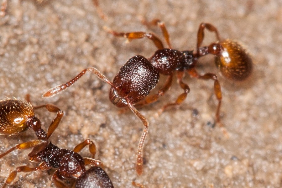Ich hätte sie ja fast für Myrmica rubra gehalten, aber aufgrund der Größe kommt wohl nur Tetramorium in Frage. Bestimmung auf Artniveau ist wohl kaum möglich.