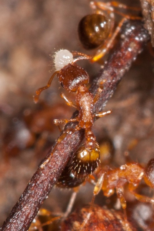 nachdem ich gestern erneut im Binger Wald unterwegs war, fand ich dieses kleine Nest an einem hangständigen Eichen-Buchen-(Kiefern)-Wald unter einem Stein. Als Ameisenlaie würde ich vorsichtig vermuten, daß es sich um eine Leptothorax-Art handeln könnte - ist das richtig? Die Ameisen waren zwar eher gemächlich unterwegs, aber die Fotos sind leider trotzdem nicht so toll geworden. Entschuldigt also die Qualität...