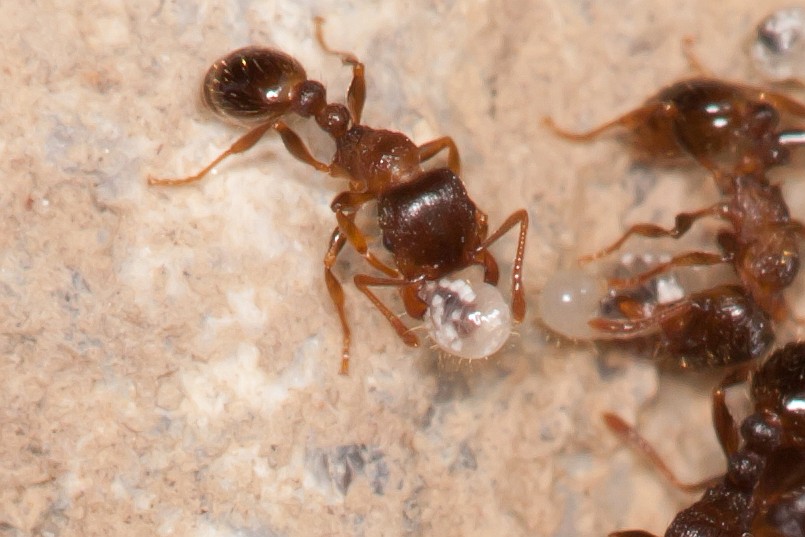hier kommt die nächste Ameise, bei der ich vorsichtig vermuten würde, daß es sich diesmal um eine Tetramorium-Art handelt? Geht das in die richtige Richtung? Gefunden wieder unter einem Stein an einem (überwiegend) Fichten-Kiefern-Waldrand im Übergang zu einer Streuobstwiese.