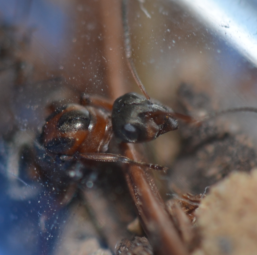 Danke Boro fürs Bestimmen. Die Arbeiterin aus dem Foto ist auch mit Abstand die größte, die kleineren haben fast keinen erkennbaren Rotanteil am Thorax. Die wirken dann eher schon aschgrau.