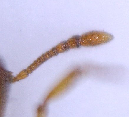 Sehr gutes Bild vom Fühler! - Du musst den Schaft als erstes Glied mitzählen. Ich habe ja Tausende von Kolonien von Temnothorax und Leptothorax bestimmt. Hilfreich war Folgendes: Schaft und Pedicellus sowie die drei dicken Endglieder (zusammen 5) sind leicht zu erkennen. Dazwischen ist eine Gruppe kleinerer Glieder, 6 oder 7. Die sechs Glieder bei Leptothorax sind mit "unbenanntem Zählen" auf einen Blick gut erfassbar, die sieben bei Temnothorax erscheinen einfach als "viele". Dann muss man nachzählen. ;)