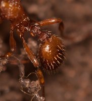hier hätte ich dann noch eine Myrmica sp. anzubieten, die natürlich nicht wirklich einen Artnamen erwartet. Aber im Gegensatz zu meinen wenigen anderen Myrmica cf. rubra-Fotos finde ich die Propodealdornen dieses Exemplars ziemlich lang und der Postpetiolus ist relativ furchig...?