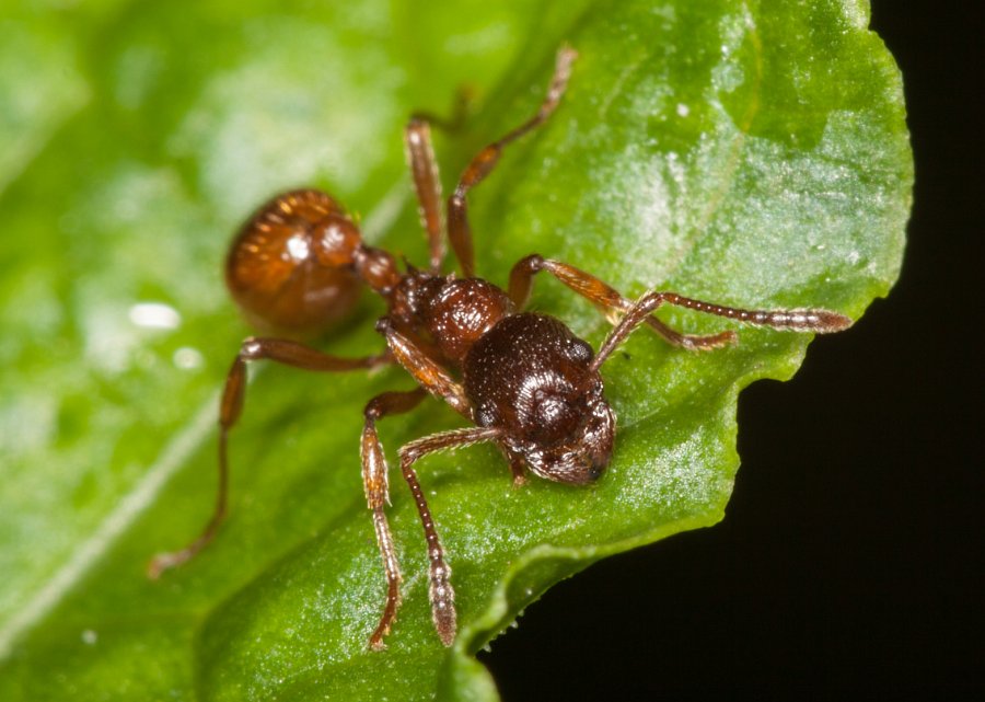 und als dritte, augenscheinlich andere Art trat auf demselben Quadratmeter noch diese Myrmica sp. auf den Plan. Die liegt scheinbar irgendwo zwischen den beiden eben eingestellten. Geht es hier vielleicht Richtung Myrmica rubra?