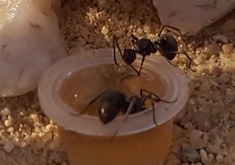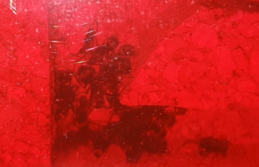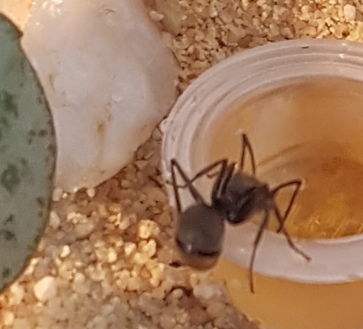 Die Tiere lassen sich nur selten blicken. In den Abendstunden sieht man ab und zu 1-2 Ameisen in der Arene. Die Tiere sind sehr schnell und laufen problemlos an Glas.