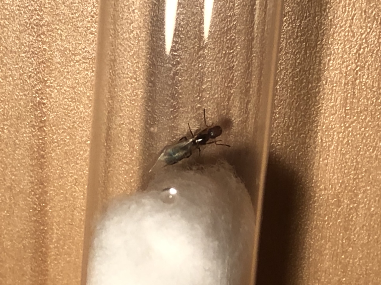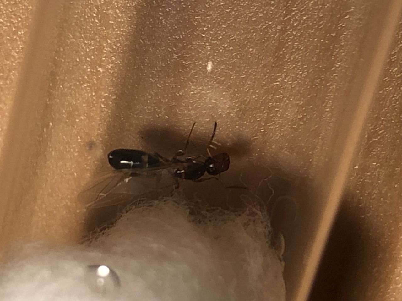 gehe ich recht in der Annahme, dass mir hier eine alate Colobopsis truncata-Gyne am Schreibtisch herumgekrabbelt ist? Schwarmzeit (Nacht) und Größe (6mm) würden wohl passen.