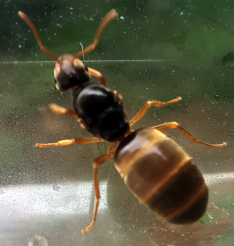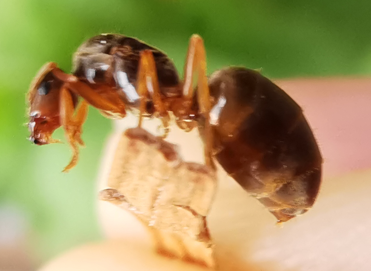 Die Obere ist aktuell noch in Einzelhaft in einem Reagenzglas, wenn weitere Photos hilfreich sein sollten... Habe ich den Trick richtig im Kopf, dass zwei Stunden Sibirien (alternativ Kühlschrank) der Ameise nichts antun, man danach aber wunderbar Fotos machen kann, bis sie wieder "aufgetaut" ist?