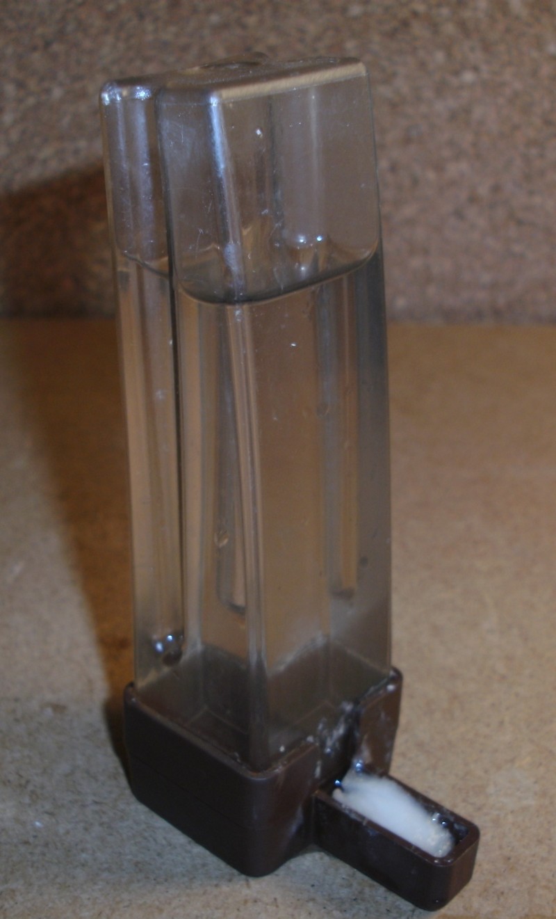Mein Hauptargument gegen die Vogeltränke ist ja das Auslaufen, das nach Bildung einer Luftblase oben bei jeder Temperaturerhöhung / Gasausdehnung erfolgen kann. Das gilt selbstverständlich auch für die nun im AF propagierten Nagertränken. (Bei den Kleinsäugern funktioniert es, weil die erheblich mehr trinken als Ameisen, und weil Überschuss problemlos in der Einstreu versickert).