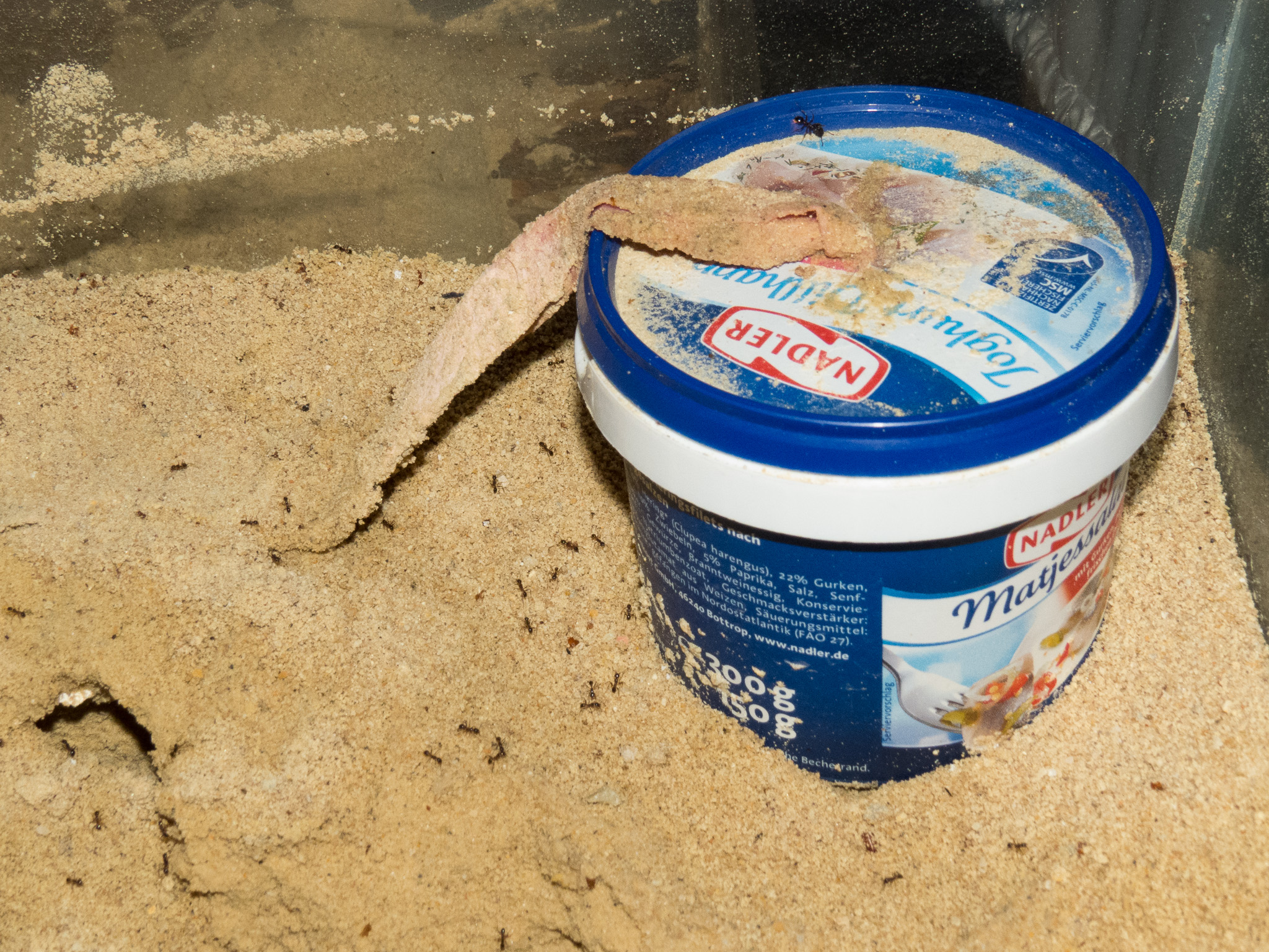 Edit: Aufgrund neuer Entwicklungen muss ich wohl meine Einschätzung bezüglich dieser Nestvariante für Messor barbarus revidieren.
