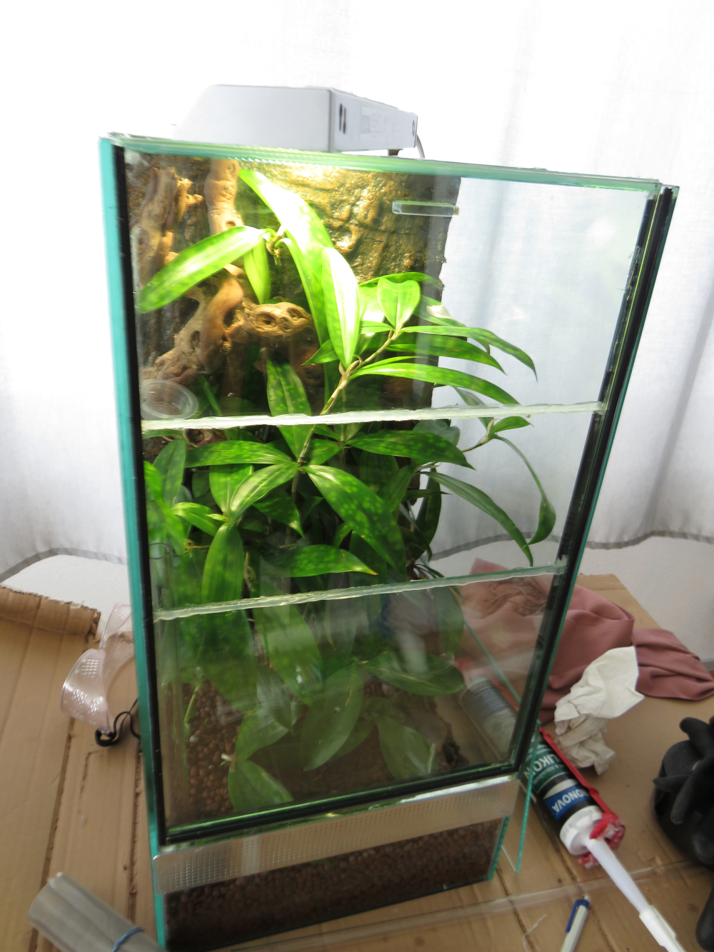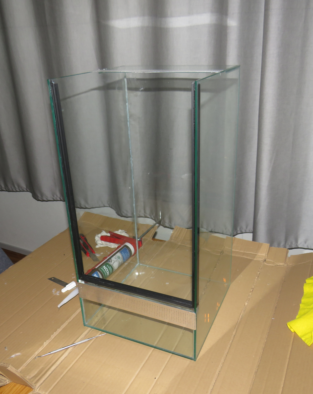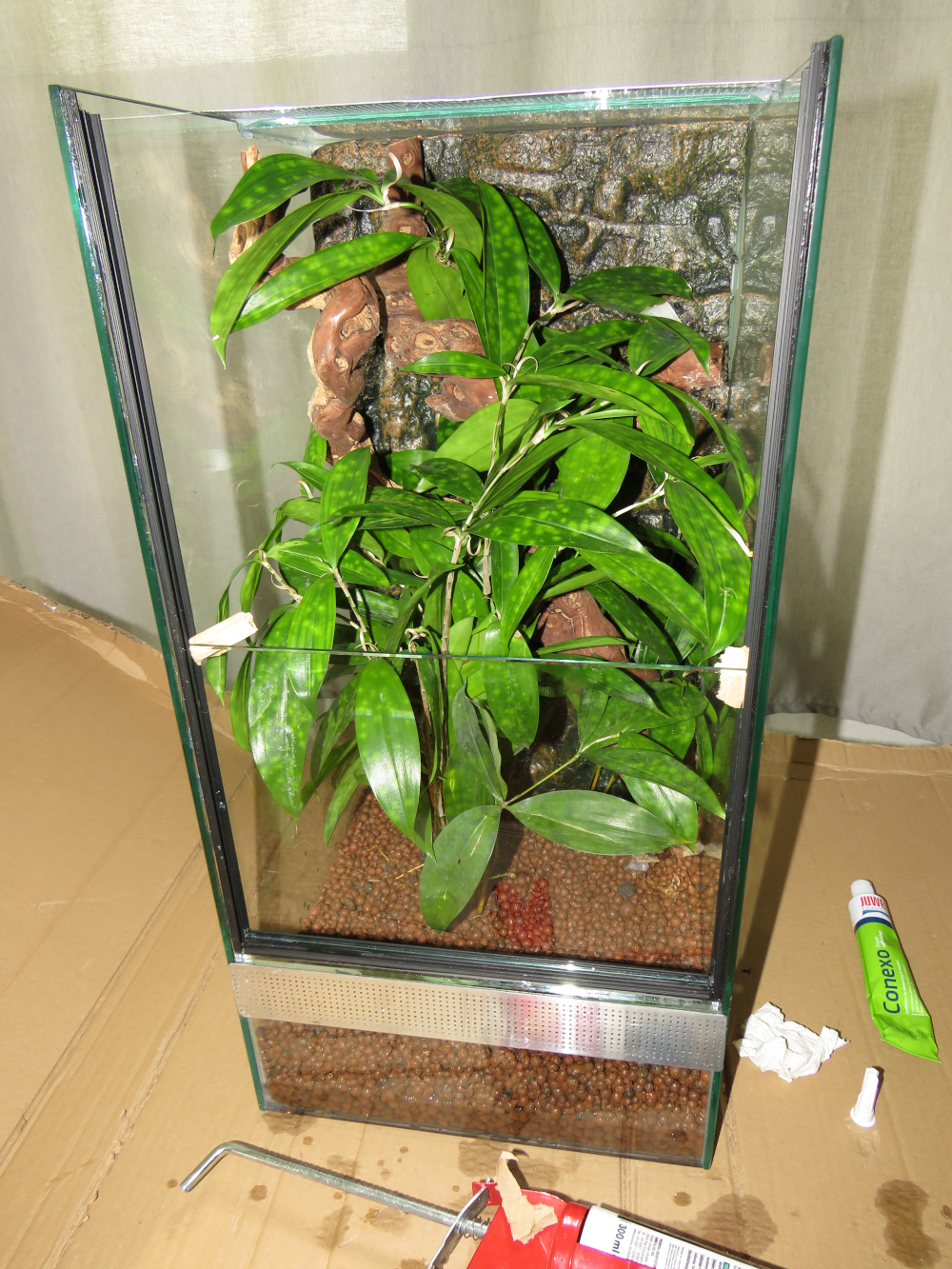 Terrarium mit eingeklebten Blenden und Falltürscheibe