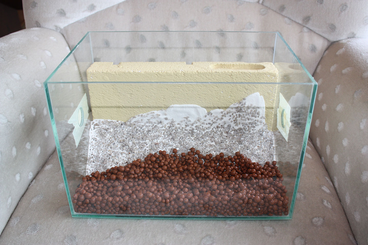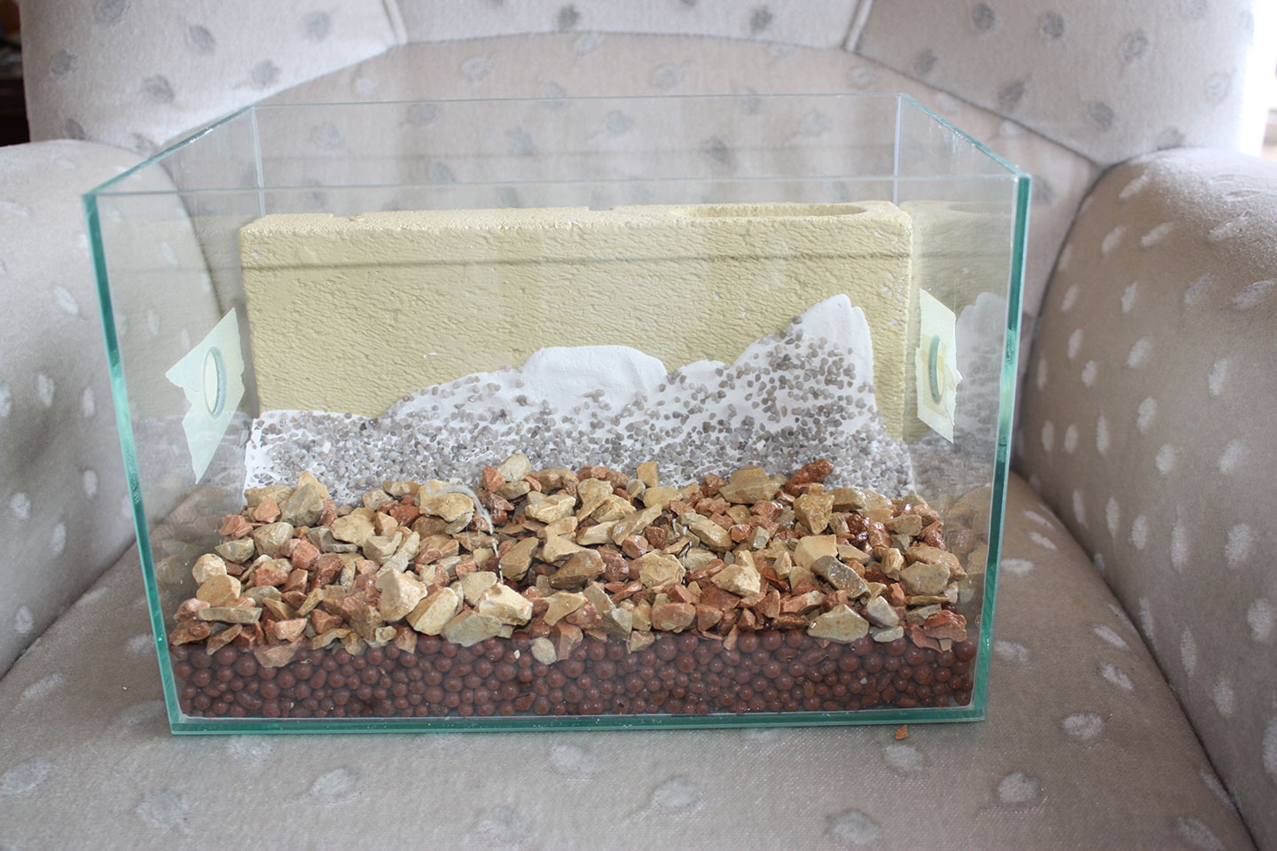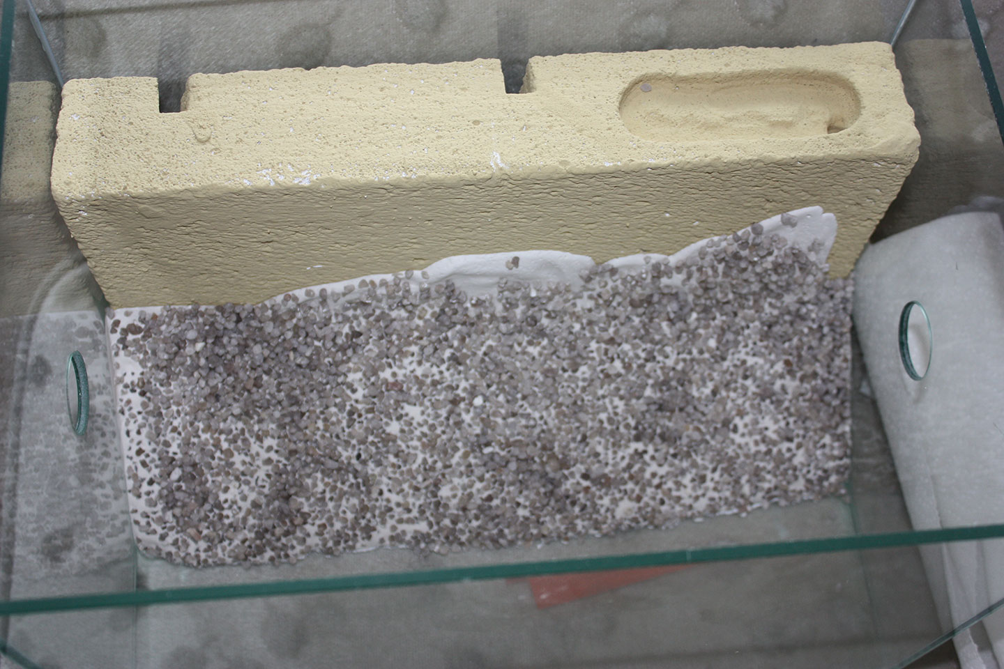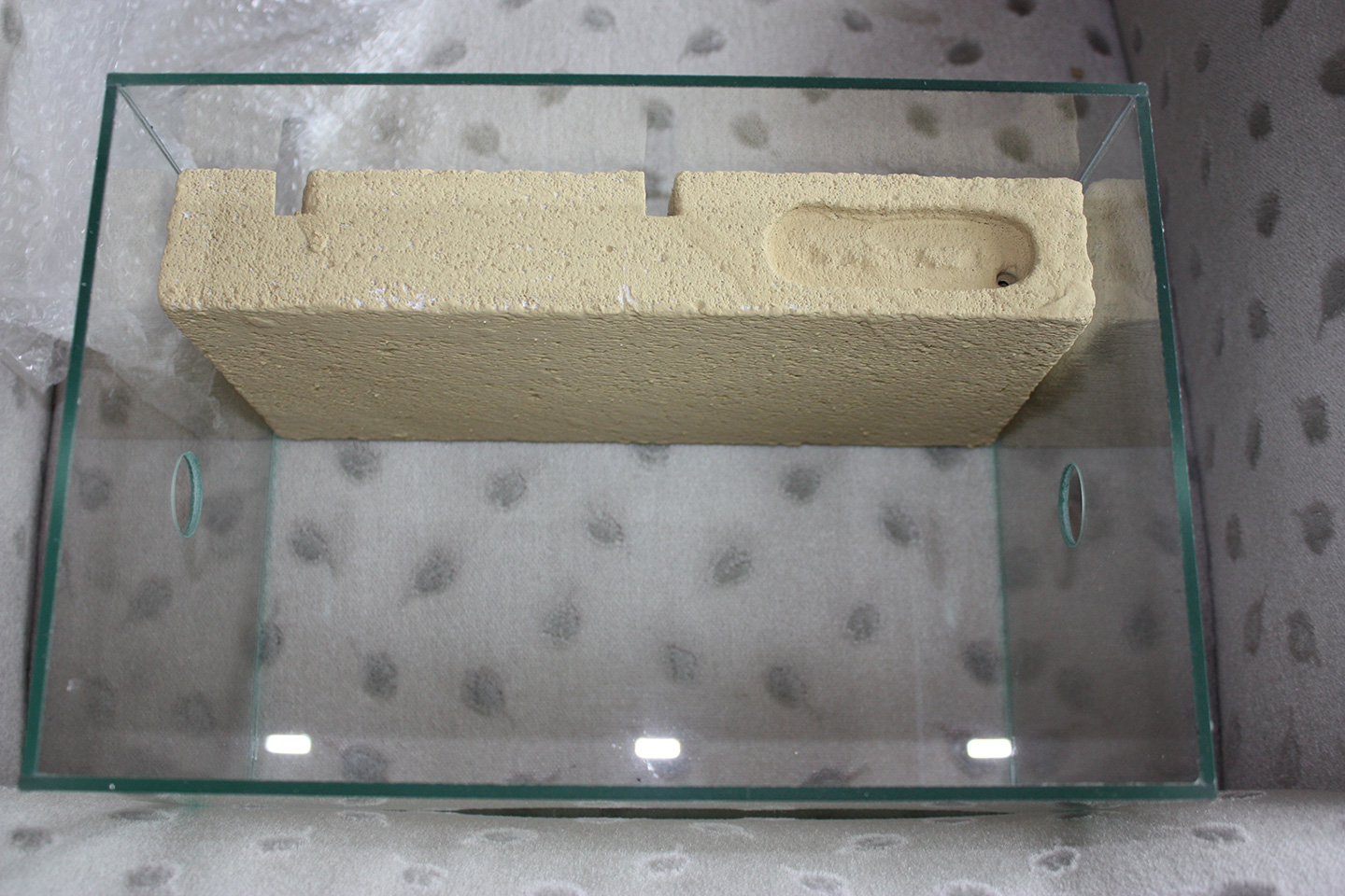 Als erstes setzte ich das fertige Ytongnest in das Glasbecken.