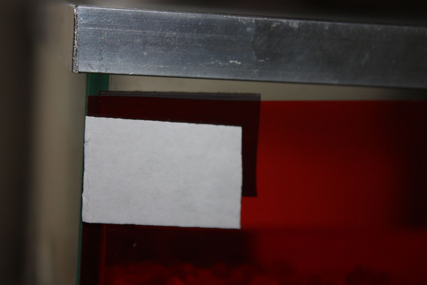 Die rote Folie wird als sichtschutz für die Ameisen mit den Magnet Klebeband was ich auf 2 cm länge geschnitten habe an 2 Seiten befestigt.