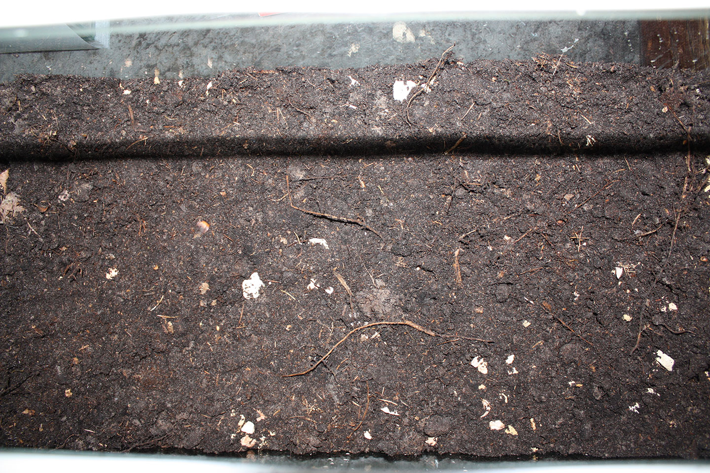 Ich fülle jetzt das Glasrahmenbecken mit Walderde. Möglichst nur 2 bis 3 ca. Hoch, damit will ich den Nestbau in der Arena verhindern.