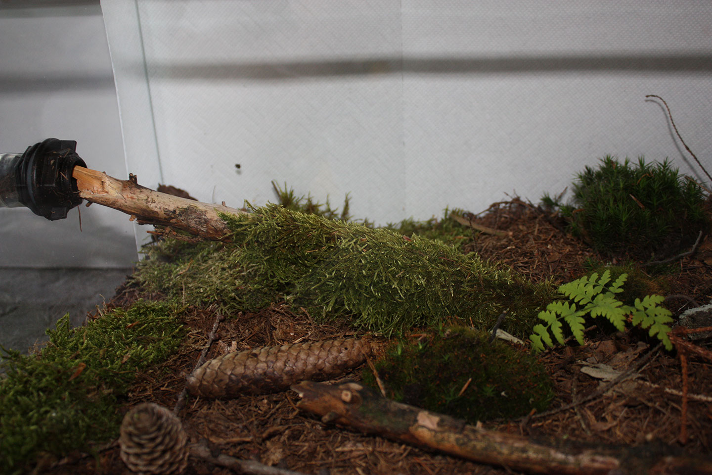 Als nächstes setzte ich die Farne oder ähnliche Pflanzen ein. Man sollte die Arena nicht zu dicht bepflanzen da man sonnst ein schlechteren Einblick hat. Anschließend befülle ich es mit einer 1-2 cm hohen Waldstreu Schicht.