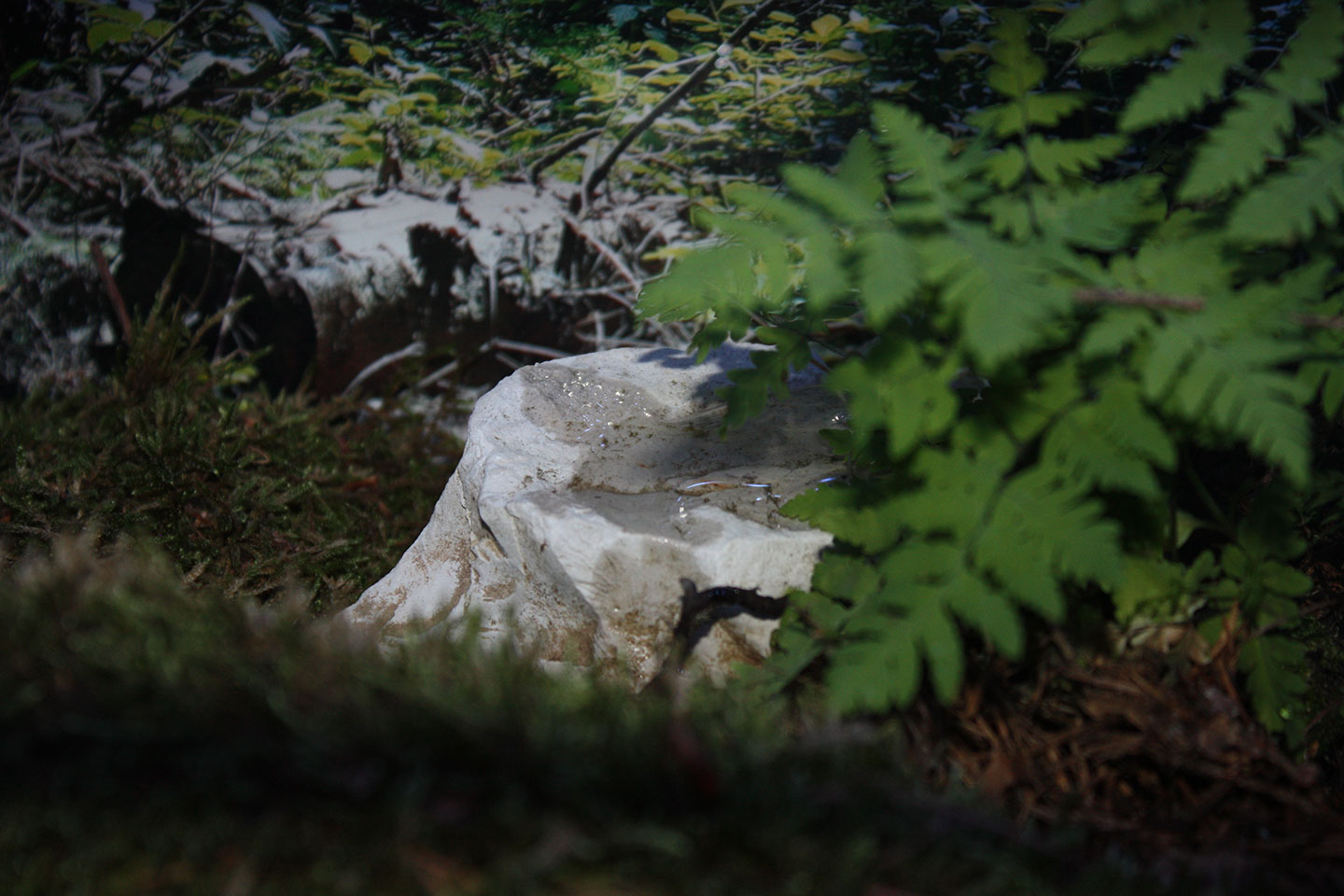 Das Wasserloch, oder besser gesagt der Wasserstein. Ein natürlicher Kieselstein mit einer Vertiefung wo Wasser drin stehenbleibt.