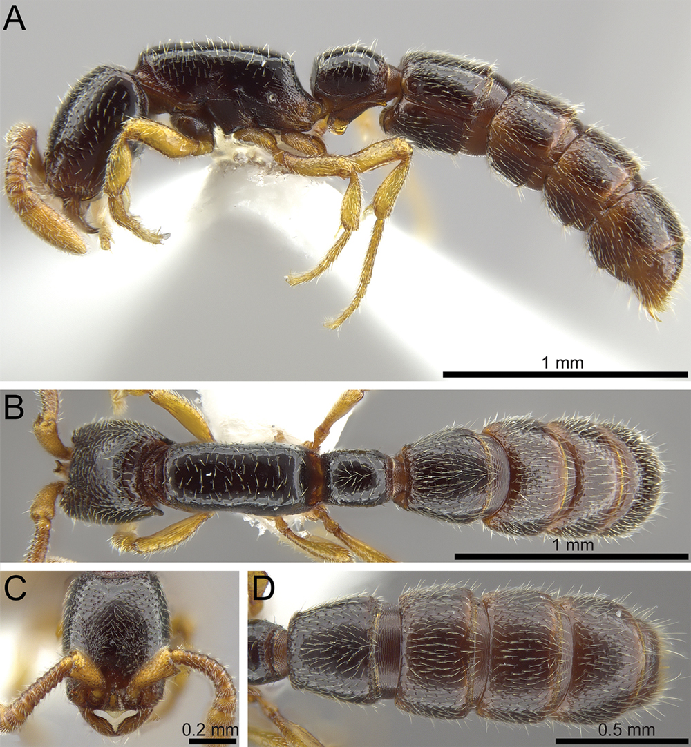 As pointed out in previous studies, a crucial advantage of using 3D models based on micro-CT data is its potential application as cybertypes (Faulwetter et al. 2013, 2014; Akkari et al. 2015; Hita Garcia et al. 2017a, 2017b). The concept of a cybertype is to present a detailed and as complete as possible virtual reconstruction of a physical type specimen that is freely accessible. Hita Garcia et al. (2017a) critically assessed the usefulness of cybertypes for ant taxonomy, and due to the limitations in voxel resolution in their scan data suggested to use a combination of micro-CT data (raw data, 3D PDF, and 3D rotation video) and montage photos (three standard view: head in full-face view, full body in profile and dorsal view) as a minimal cybertype for ants. Although we have achieved much higher quality 3D reconstructions compared to previous ant studies using micro-CT and strongly reduced the limitations discussed by Hita Garcia et al. (2017a), we still believe that a minimum ant cybertype should include optical montage photographs. The main reason for this is the lack of natural colour in the micro-CT, which can only be shown with visible light photography. However, in this study we improve the previous ant cybertypes by providing micro-CT scans of single body parts and scan data for the holotype and one paratype, if available, thus increasing the usefulness of the cybertype datasets.