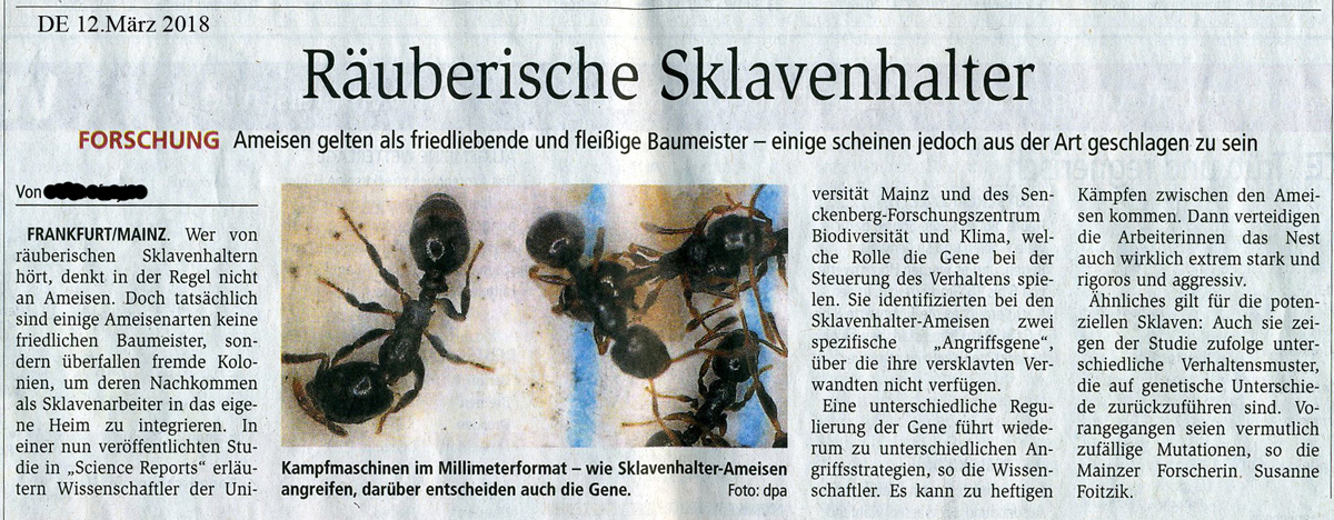 Es ist einer der schlechtesten Berichte über Sklaven haltende Ameisen, den ich je zu Gesicht bekam, heute in unserer Tageszeitung aus Darmstadt: