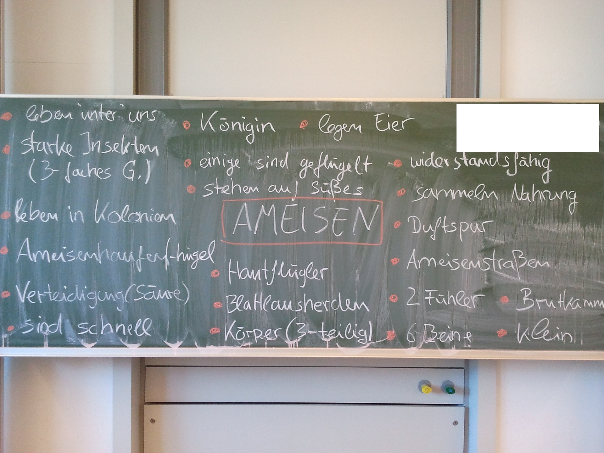 Es ging in erster Linie darum einen Überblick zu gewinnen. Die Unterrichtsstunde lautete "Insekten – Körperbau und Verhalten am Bsp. der Ameise".